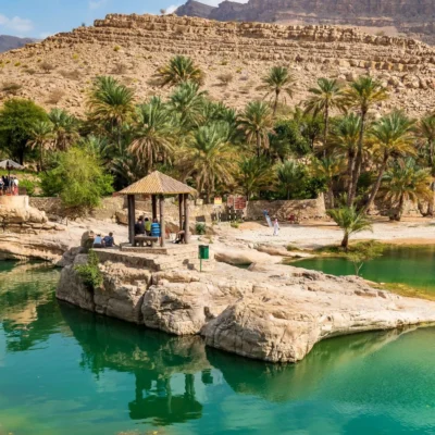 - Wadi Shab, oasis, between the mountains, Oman